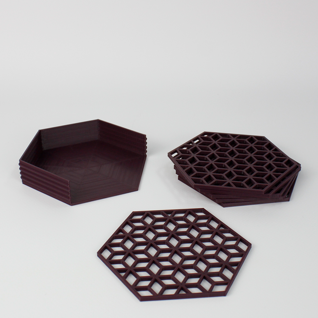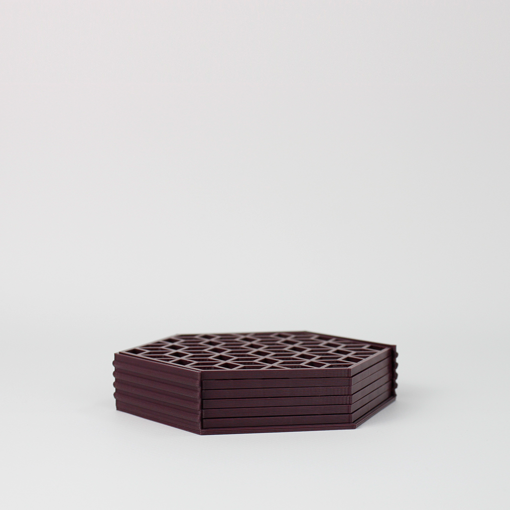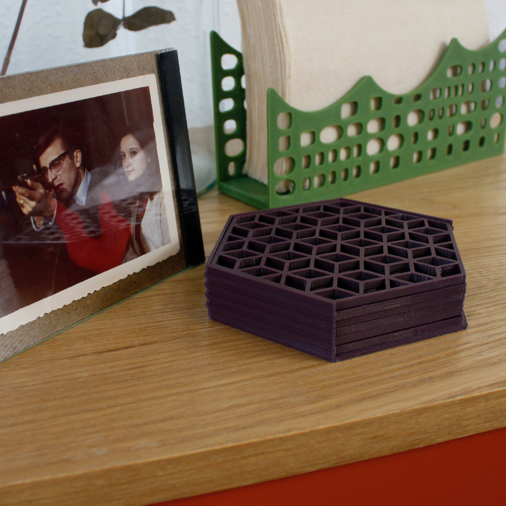 El posavasos Fuller está diseñado con una trama hexagonal que recuerda a nuestro propio logo, ya que está inspirado en las investigaciones formales de R. Buckminster Fuller, quien acuñó el término “livingry”.