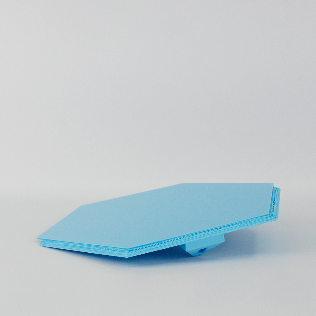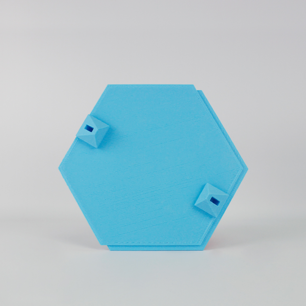 Esta pieza de forma hexagonal está pensada para cubrir los planos verticales de las estructuras espaciales Livingry System.